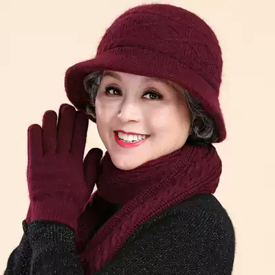 Middle-aged and elderly hats Lady winter middle-aged mother old grandmother autumn and winter rabbit hair knitted wool hat scarf