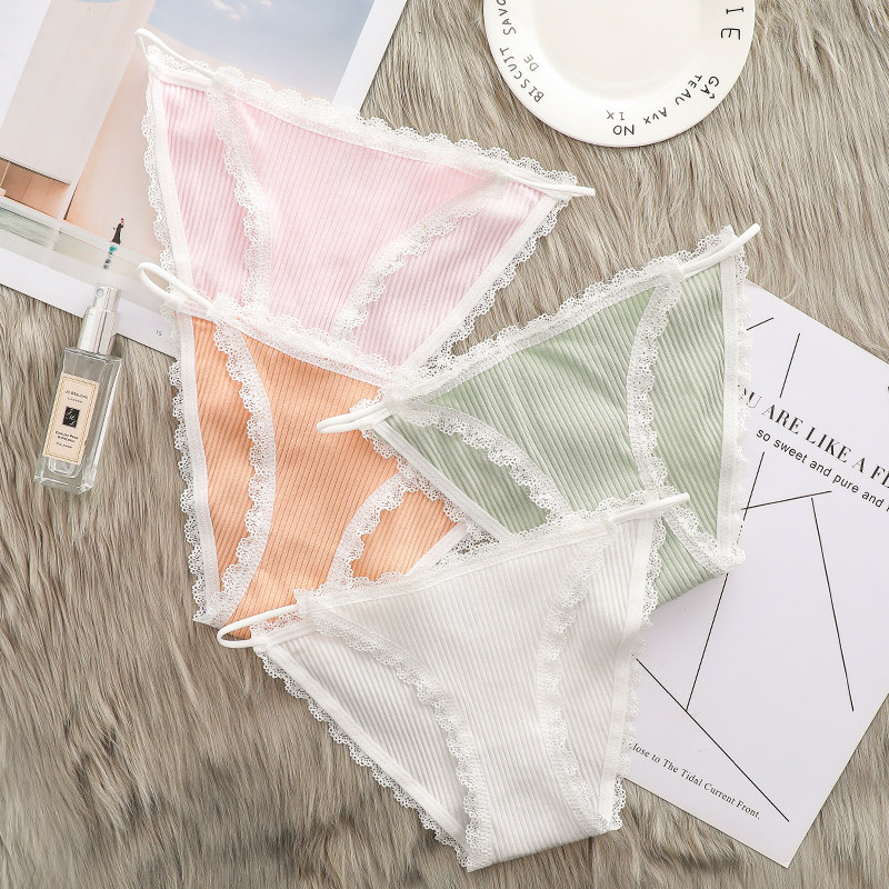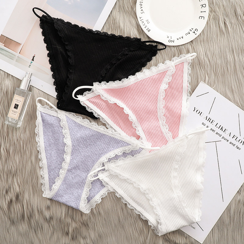 5 Dress) Briefs Female Pure Cotton Stalls Sexy Lace Unmarks Fat MM Large Size Mid Waist Teenage Girl Raw Money Triangle Pants Head