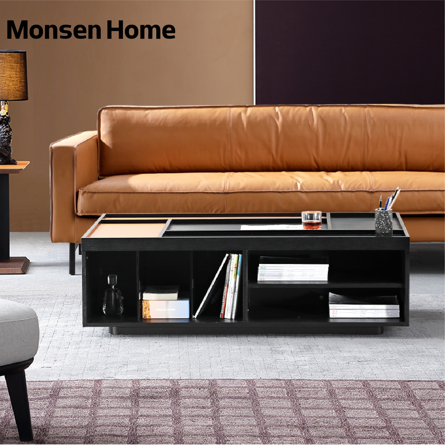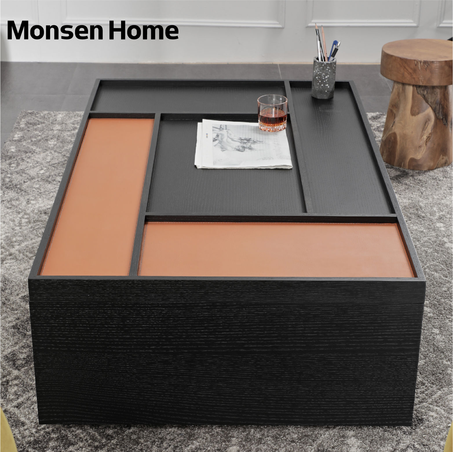 MonsenHome Mu business style minimalist light luxury designer coffee table solid wood Nordic minimalist modern square storage
