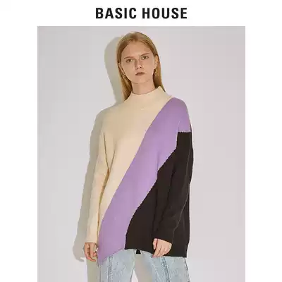 Basic House Baijia good women's clothing autumn and winter shopping mall with the same sweater stitching Korean version of the top tide HTKT720D