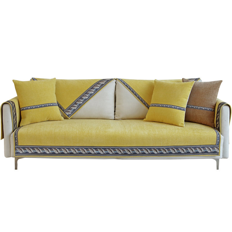 Chenille summer sofa cushion Nordic style four seasons universal simple modern leather non-slip gray backrest towel cover