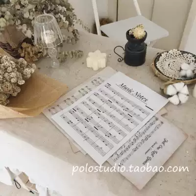 ins European-style retro literary English paper, old pages, English music score, pendulum, wall decoration props