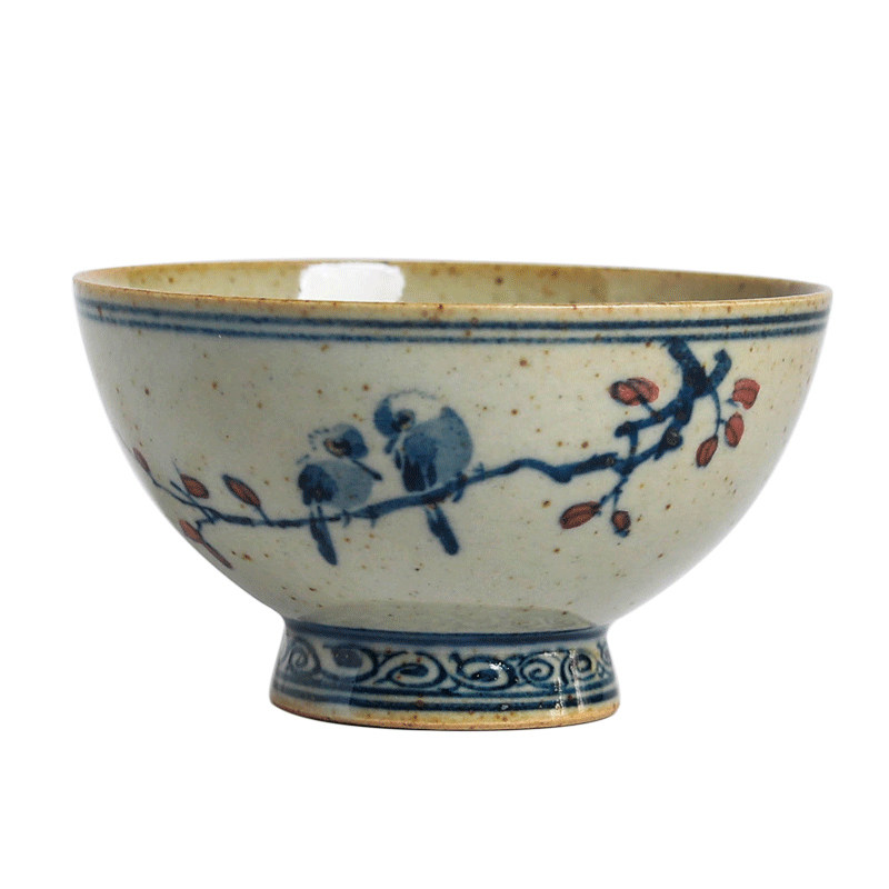 Duqing wood-fired flower and bird master cup single cup ceramic antique pure handmade kung fu tea set hand-painted blue and white tea cup