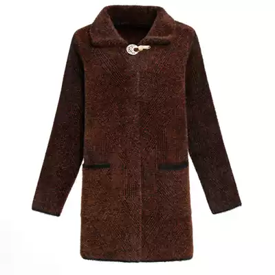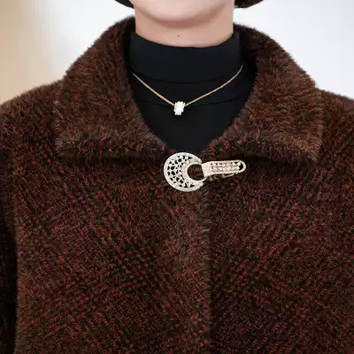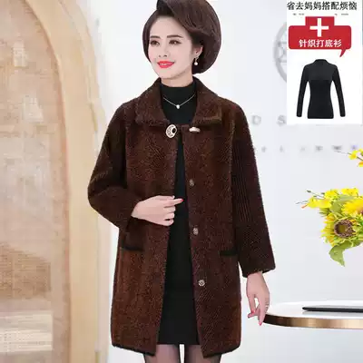 Middle-aged fat mother autumn and winter woolen coat mink velvet medium and long version thick cashmere coat women plus fat plus size