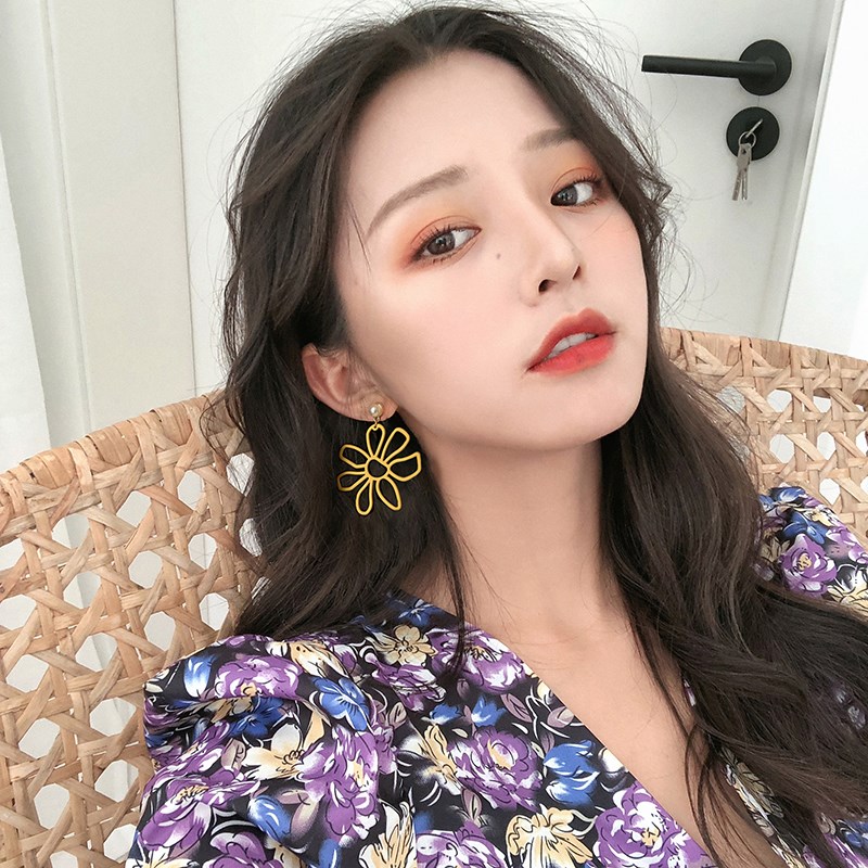 Hollow irregular yellow flower silver needle flower ball ball drop earrings Silver ear hook Acrylic white flower stud earrings (silver needle) Yellow green contrast geometric earrings Silver needle red circle earrings Silver needle egg