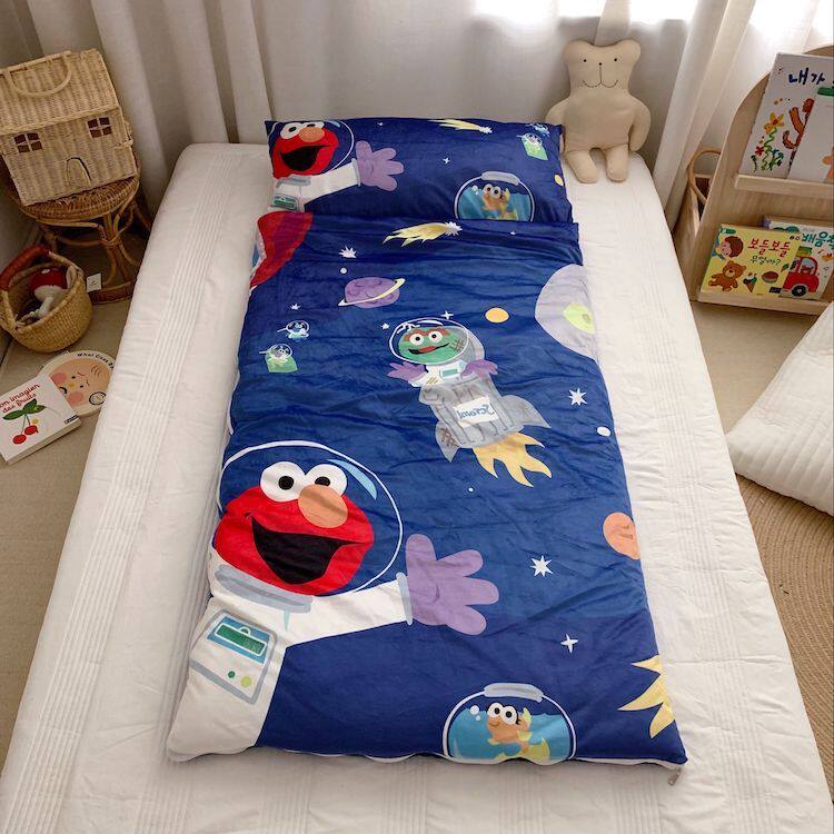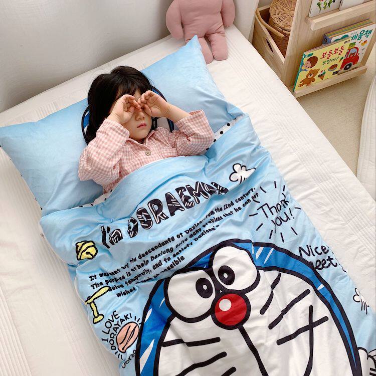 Autumn and winter cartoon baby velvet sleeping bag anti-kick is thickened warm children's kindergarten sleeping bag removable pillow