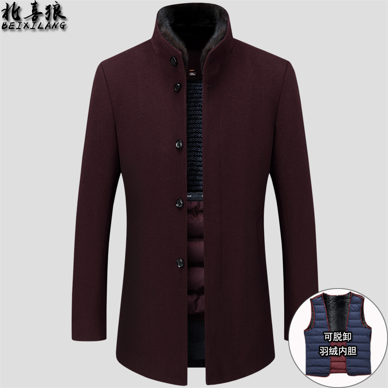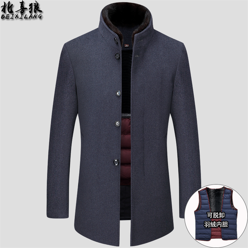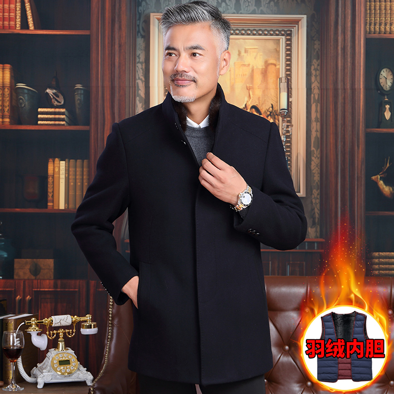 Elderly wool in winter in the middle of winter The men's mid-length version upright collar down Neri thickened with larger code jacket Dad dress