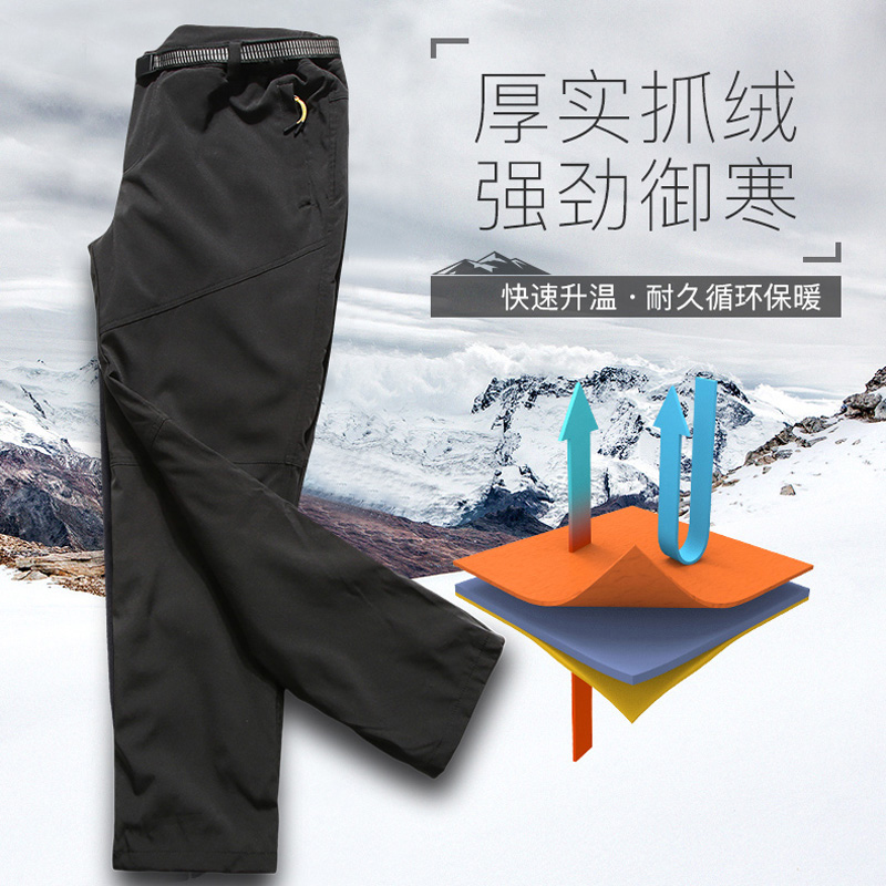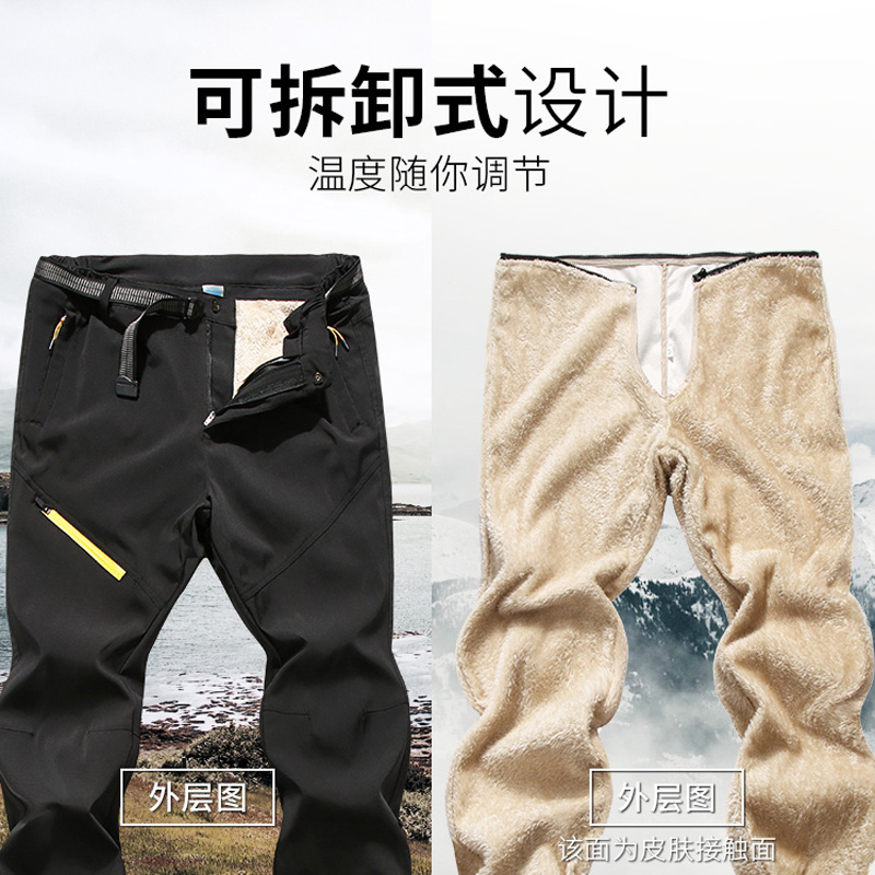 Woodpecker punching pants male and female winter plus suede thickened detachable lamb suede liner windproof and waterproof climbing pants