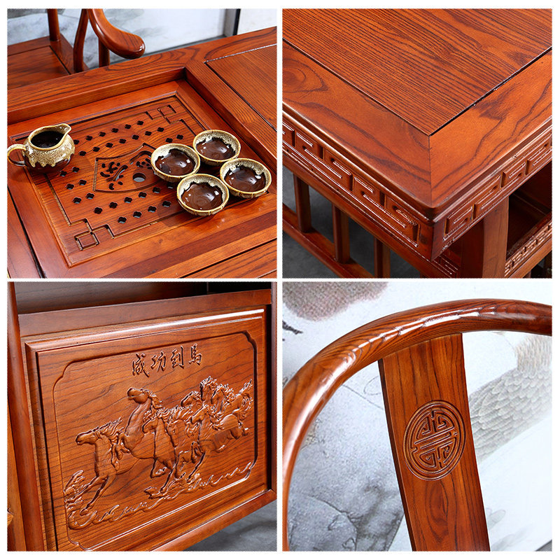 Tea table and chair combination Solid wood tea table Small apartment New Chinese tea table Simple living room Kung Fu tea table Household small tea table