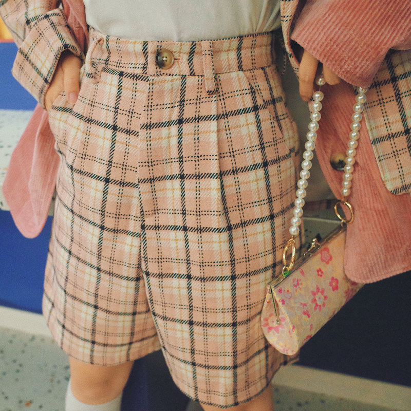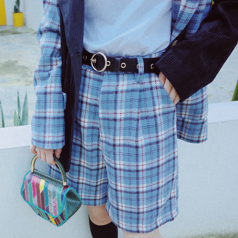 Huang Niuniu's original self-made "Scotland on the Bagpipes" a pair of playful checkered retro trousers