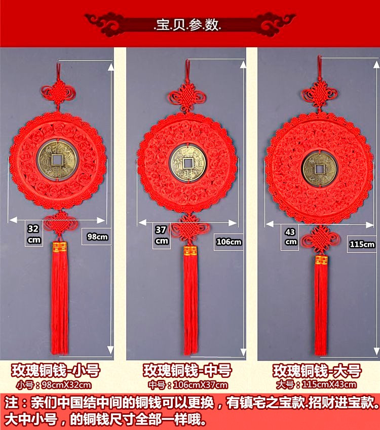 Caiying large copper money Chinese knot hanging decoration Characteristic home hanging decoration New house housewarming living room entrance decoration Gift
