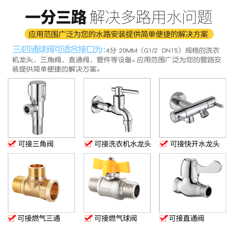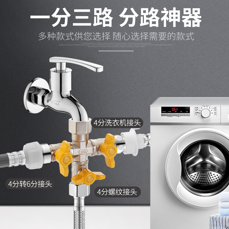 Washing machine three-head water faucet one in three out division separator one-third three-way valve multi-function connector