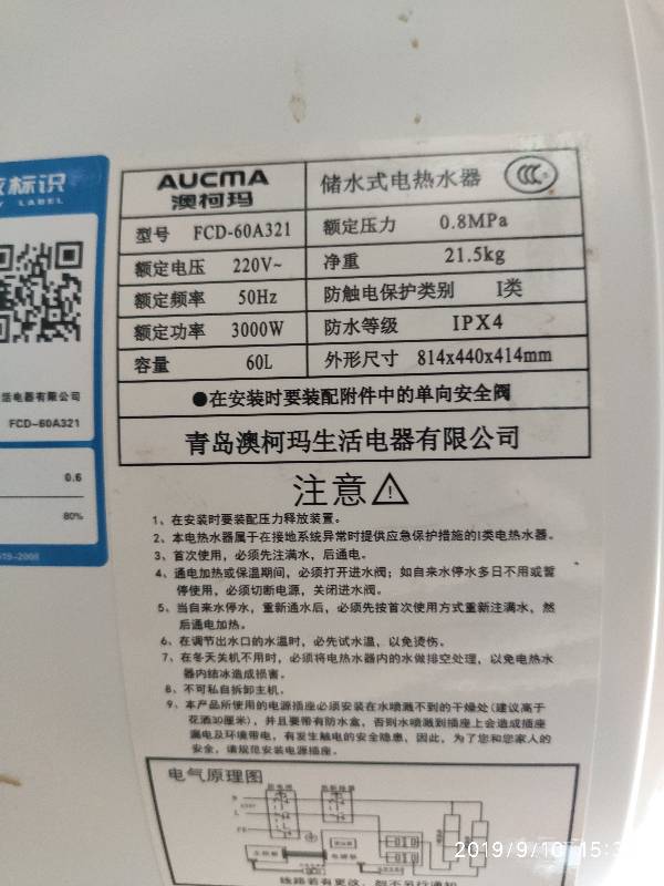 Aussie karma FCD-50A321 electric water heater built-in anti-electric wall insulation hot and cold access water flow sensor 4 points