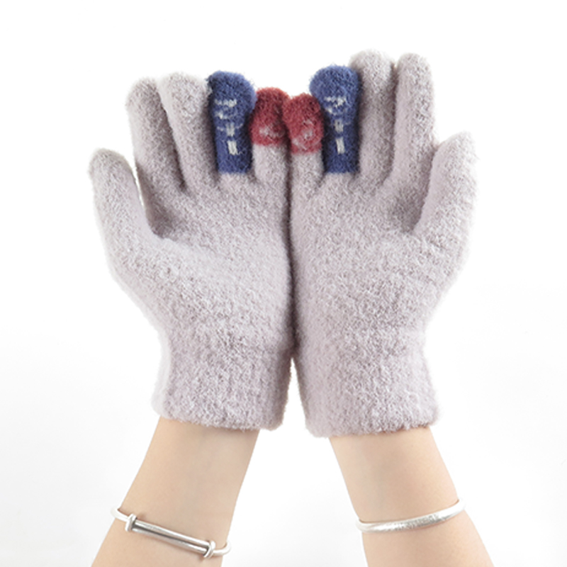 Autumn and winter children's gloves boys' boys' winter knitting full finger warm wool kids cartoon cute five-finger elementary school students