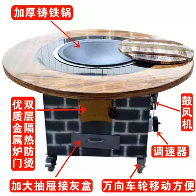 Firewood fire chicken stove big pot table burning charcoal iron pot stew table pot chicken stove restaurant commercial hot pot table