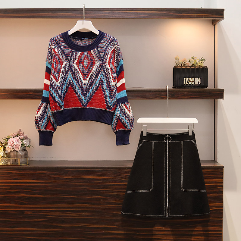 Micro Fat Sister Big Size Girl Dress With Slim Ocean Pie 2022 New Tide Spring Early Autumn Winter Net Red Cover Two-piece Suit Dress