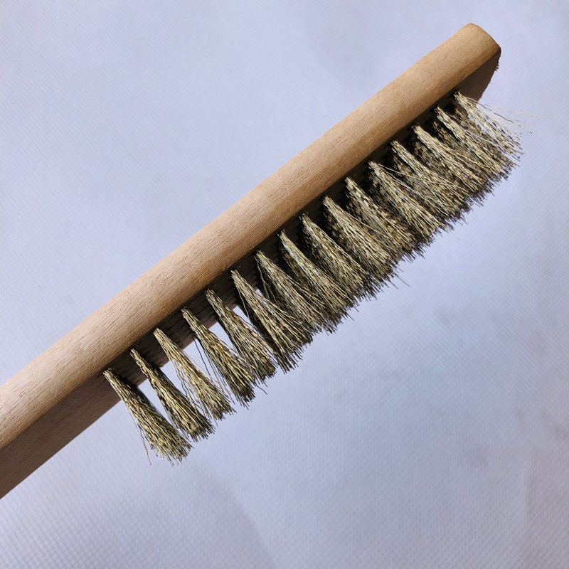Copper wire brush polishing cleaning grinding text play encrypted wooden handle pure copper wire brush large industrial derusting copper wire board brush