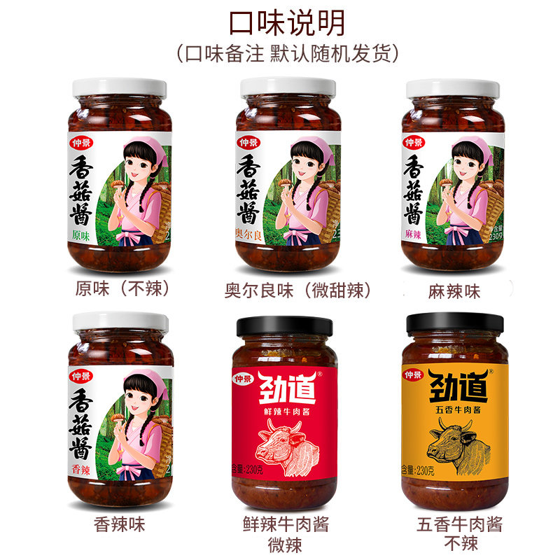 (6 bottles) = (2 original taste 2 Orleans 1 spicy 1 spicy) (6 bottles) = (3 original taste mushroom sauce 3 five-spice beef sauce) (6 flavors each 1) = (4 mushrooms sauce) = (4)