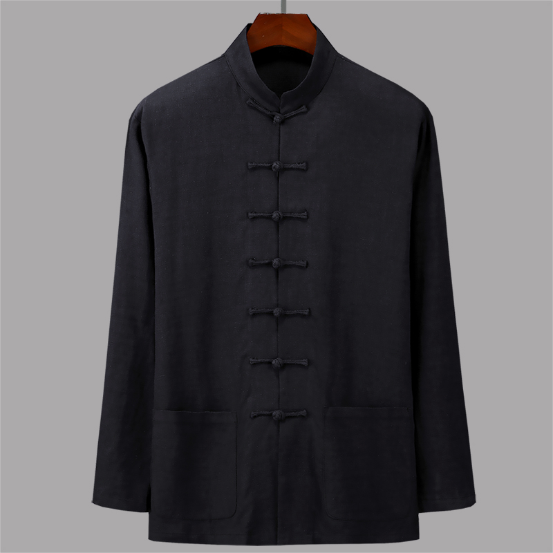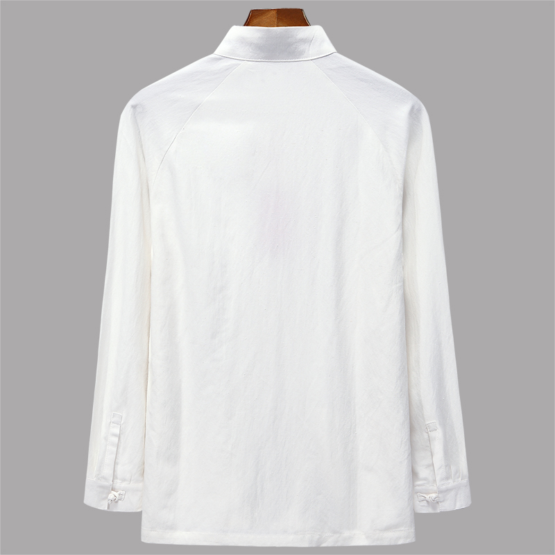 Spring and Autumn Middle-aged and Elderly Long Sleeve White Backing Shirt Linen Tang Dress Men's Shirt Grandpa Pack Large Size Jacket Dad Pack