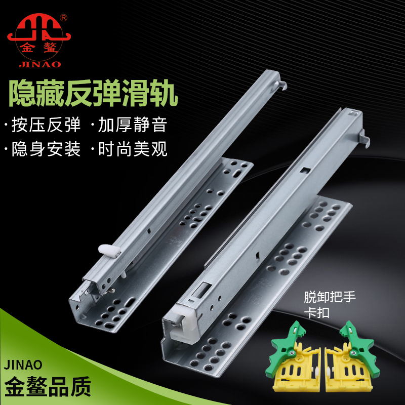 Trust Bottom Track Three-section Rebound Press-Type Hidden Drawer Rail Home Innate Cupboard Mute Thickened undermount slide rail