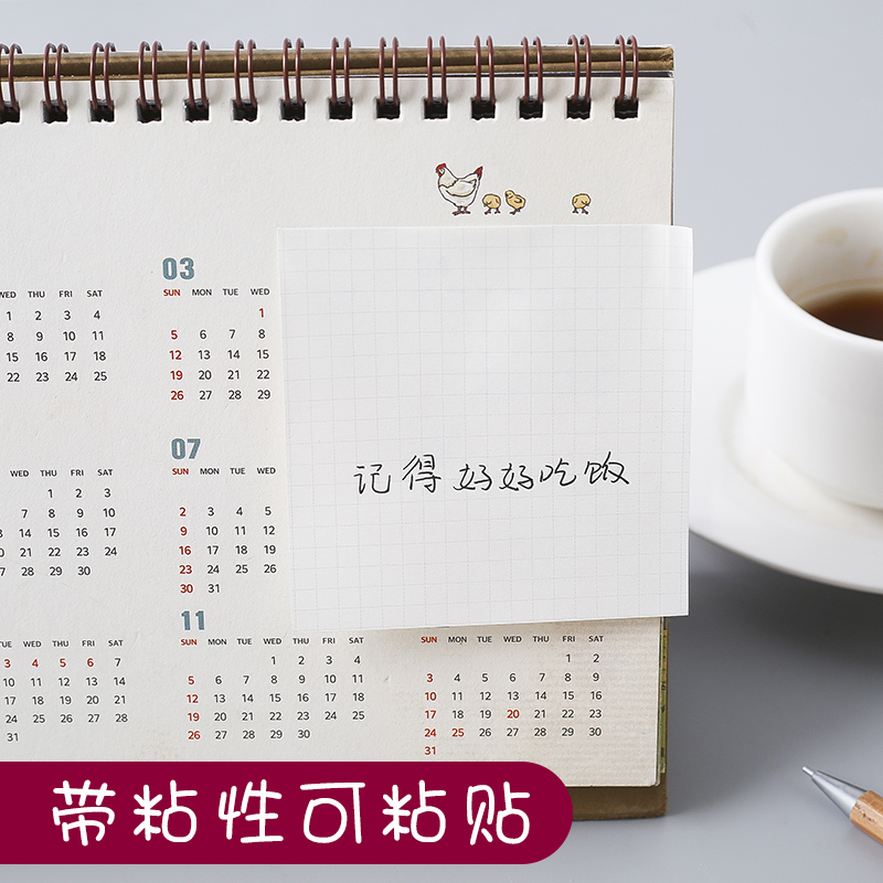 ins wind grid convenience patch box convenient post cute little fresh can tear message post N sub-post date series students with stationery supplies small strips of outside net red creative cartoon teenage girl portable sticker