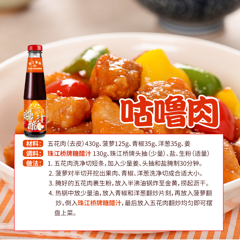 Pearl River Bridge brand sweet and sour sauce commercial 280gx6 bottles of sweet and sour pork ribs seasoning sweet and sour fish in the crest pot with meat and sweet and sour sauce