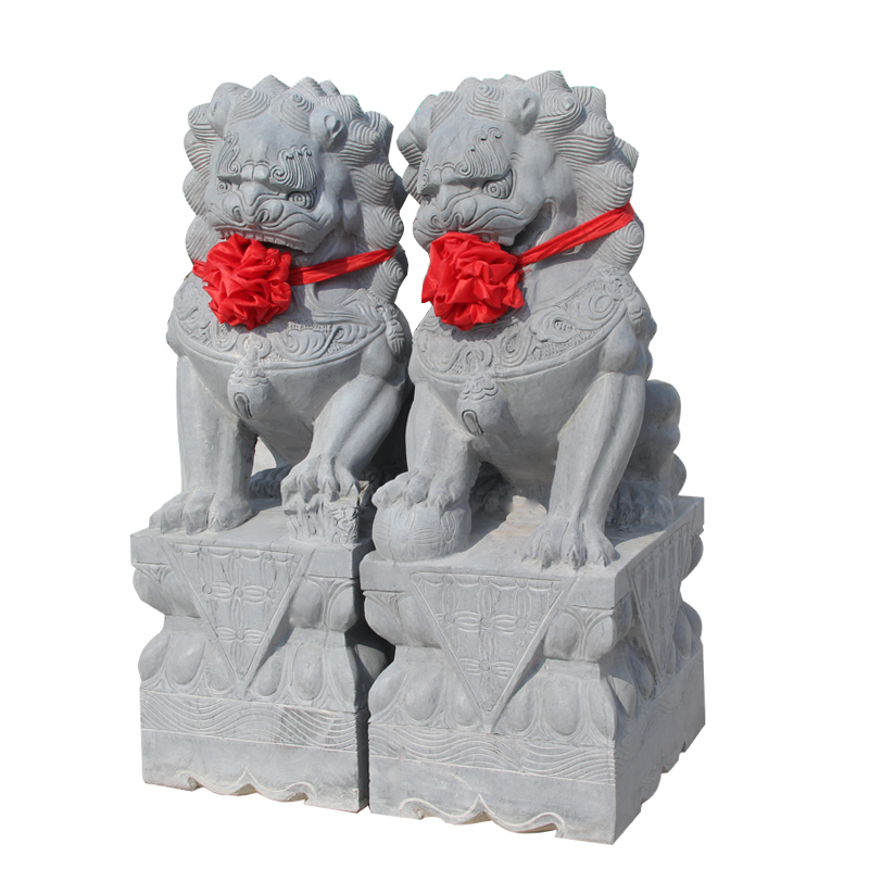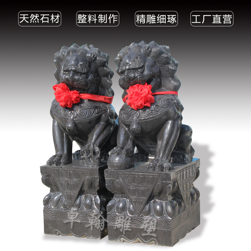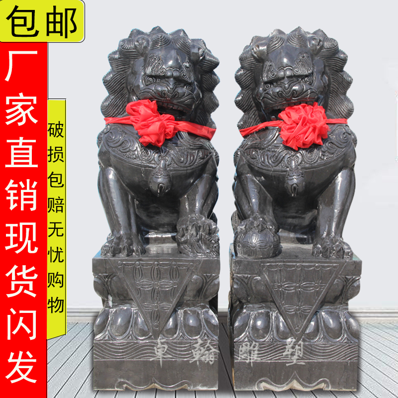 Bluestone stone lion a pair of home courtyard gate town house ornaments Han White Jade Villa ancestral hall entrance large stone lion