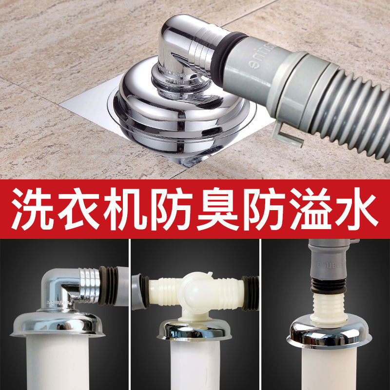 Submarine sewer pipe three-head through washing machine drain pipe Floor drain joint Three-way deodorant and overflow dual-use