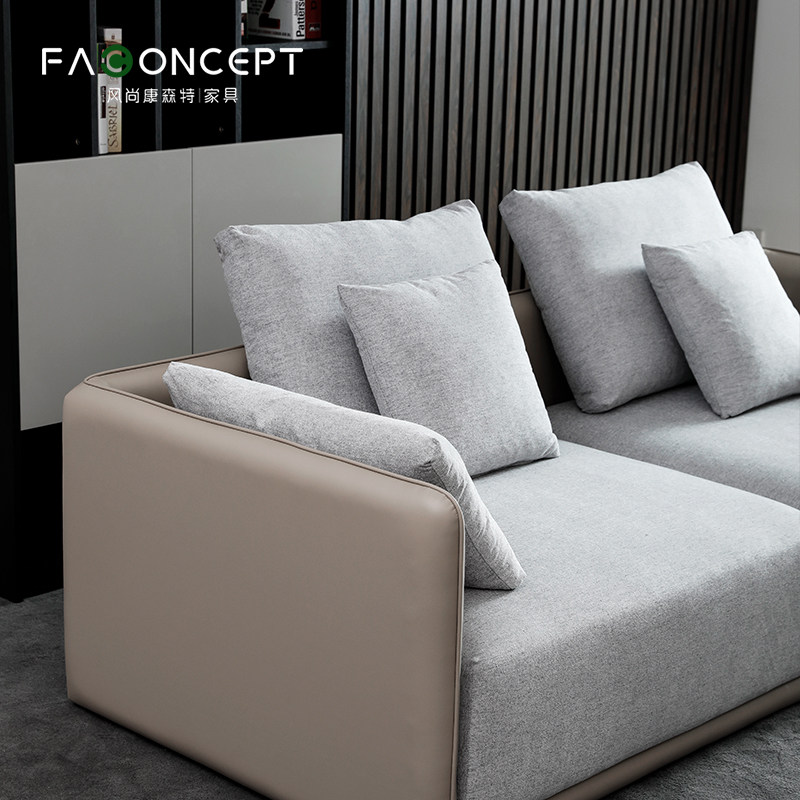Italian light luxury leather sofa large and small living room villa Nordic minimalist feather fabric double sofa customization