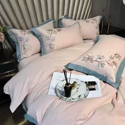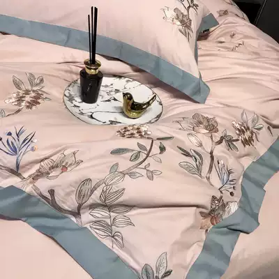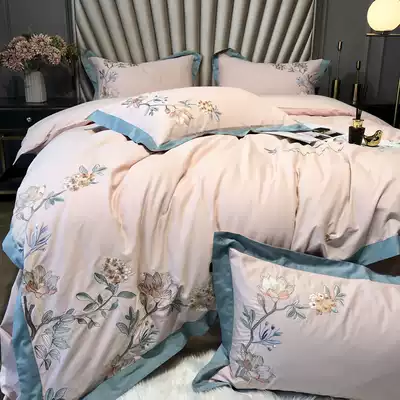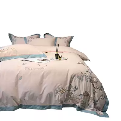 Autumn and winter brushed cotton four-piece cotton brushed thickened 60 double-strand plush cotton embroidery American bedding