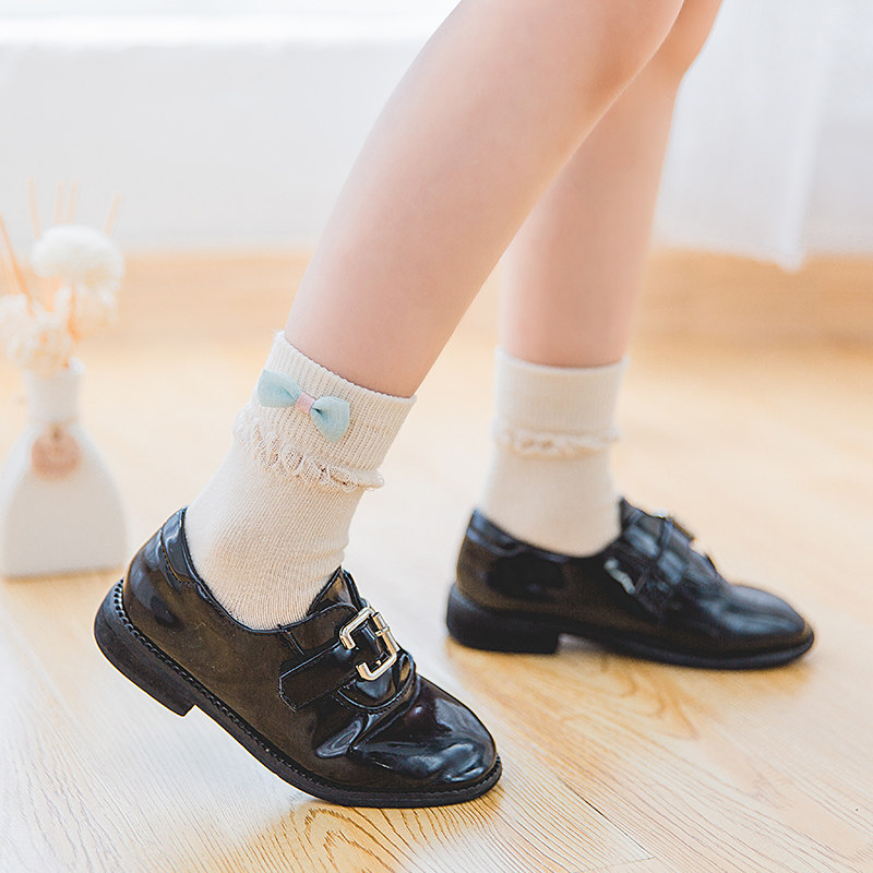 Girls socks spring and autumn thin section cotton mid-tube Korean cute lace princess socks baby socks trendy Korean version autumn