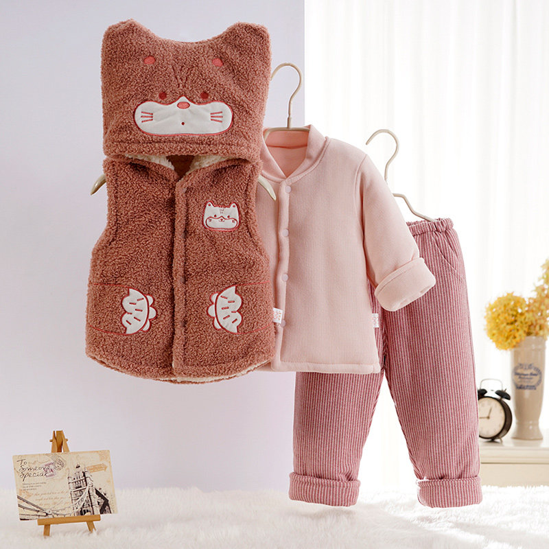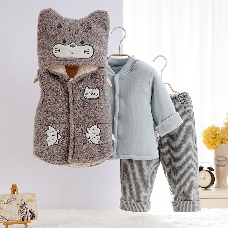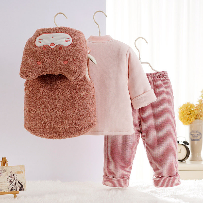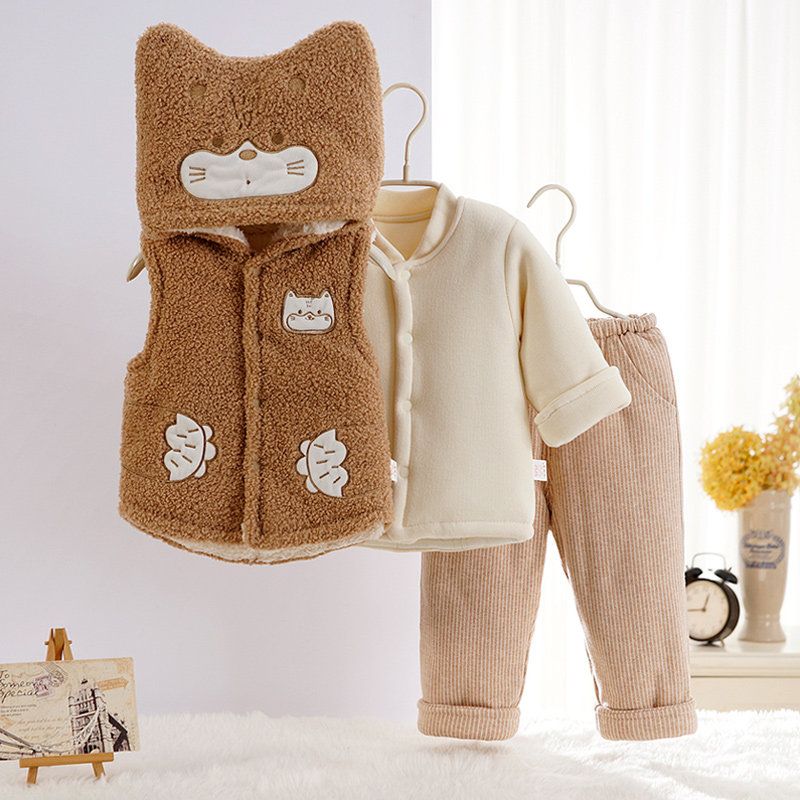 Baby clothes thickened velvet suit Baby three-piece cotton coat winter outerwear padded baby coat winter