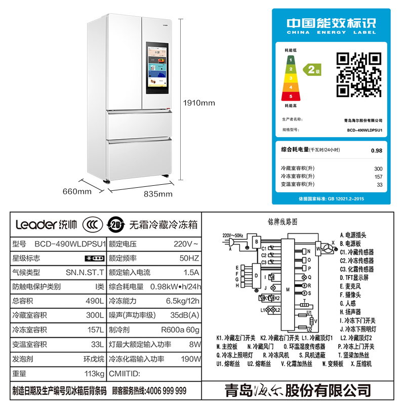Haier produced commander BCD-490WLDPSU1 French dual frequency Internet intelligent large screen refrigerator Home