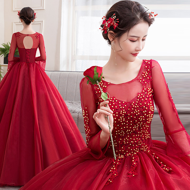Color yarn 2020 new host performance student vocal solo artistes Costume Pompon Skirt Long version of evening gown woman