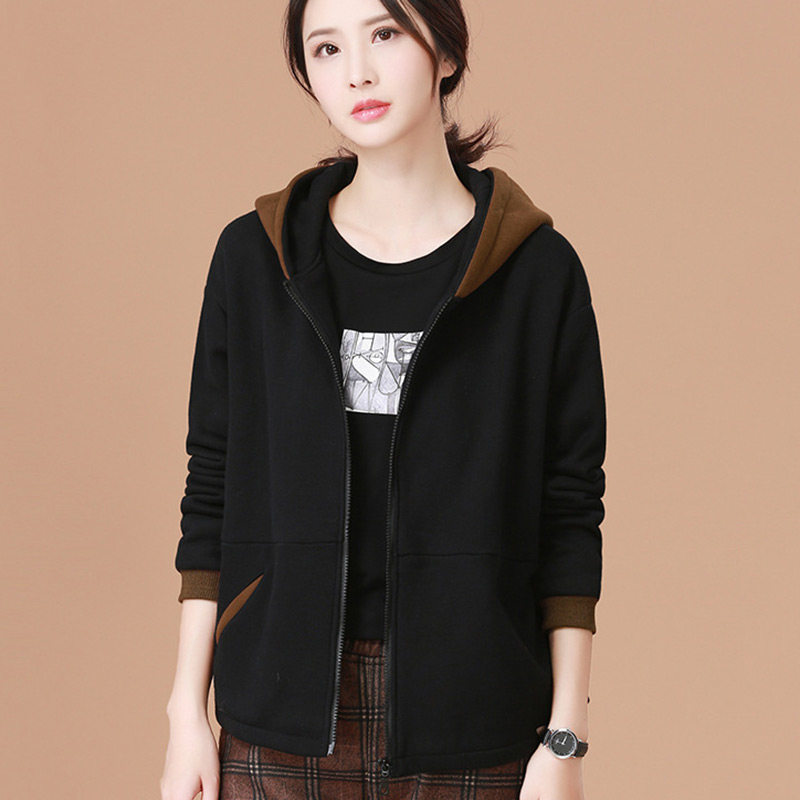 Mi Amashman flagship store official website plus velvet hooded sweatshirt women's 2021 autumn and winter new thick short jacket cardigan