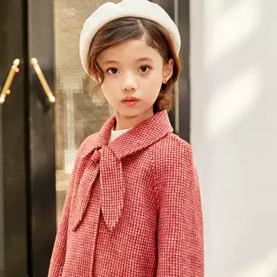 Girls double-sided woolen coat New Year's dress Red children's woolen coat Foreign school girls ' coat New Year's style