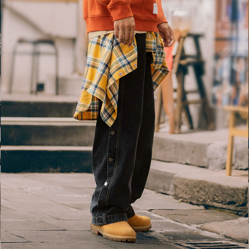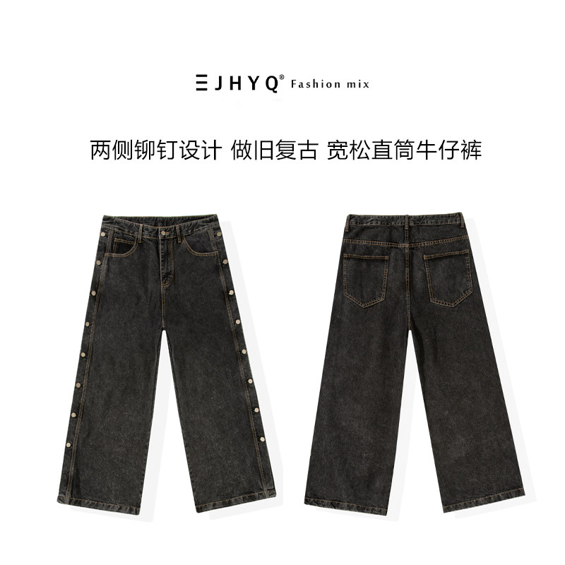Purifying Eyeballs Original Homemade Retro Tide Cards Straight Barrel Loose Jeans Male Rivets Design Pituality Old Daddy Pants