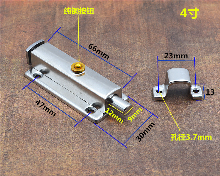 Automatic spring stainless steel Ming dress pin lock door and window door bolt door buttoning make-up room wooden door lock door lock door pin