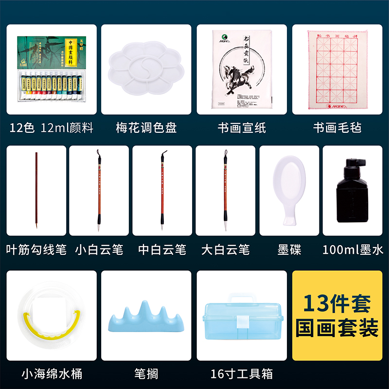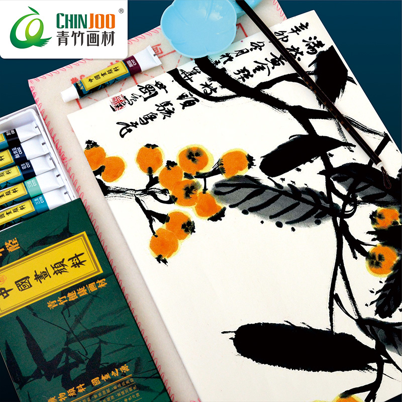 Green bamboo Chinese painting pigment set 12 colors 18color 24 beginner ink painting material formaldehyde-free tool set mineral pigment adult introduction 12ml Chinese painting pigment