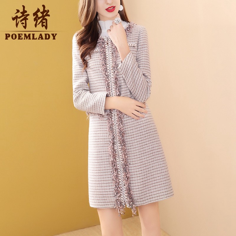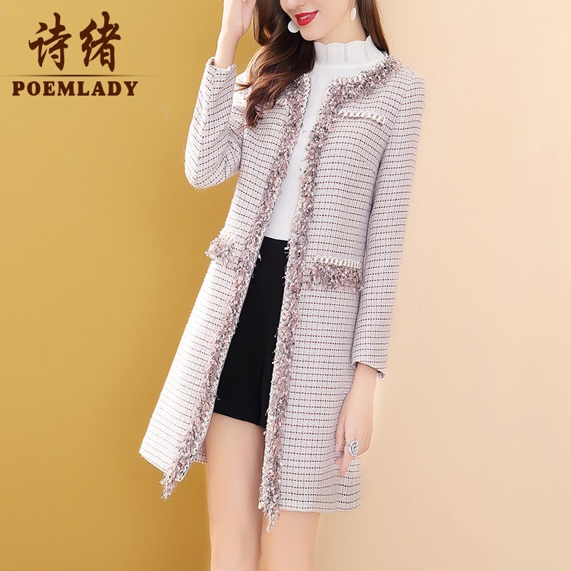 Shixu gray-white small fragrant wind long sleeve coat women's long version 2022 new spring straight Joker 50589