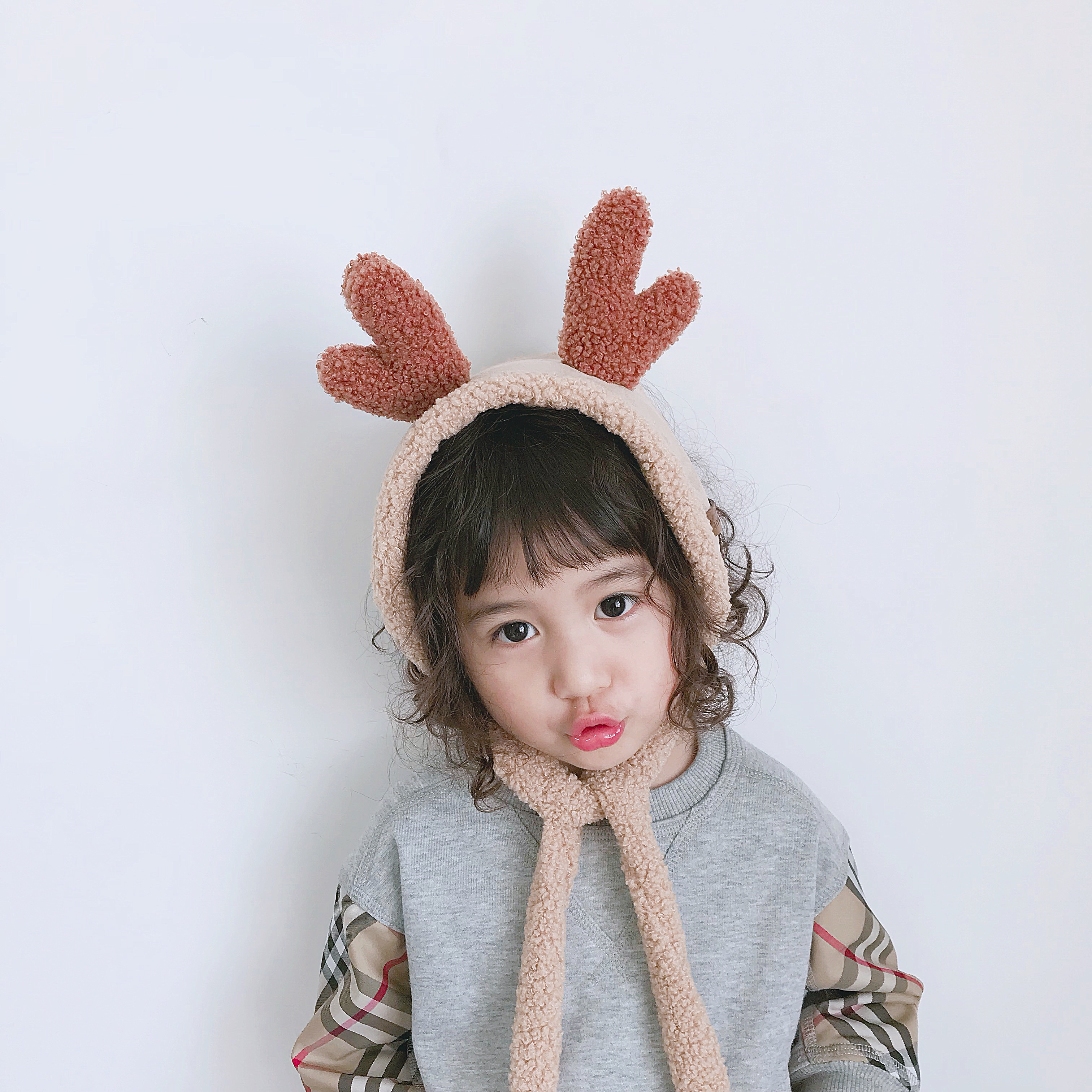 Children's hat cute antler earmuffs girls foreign style warm headband girl baby hair accessories Korean boy hat winter