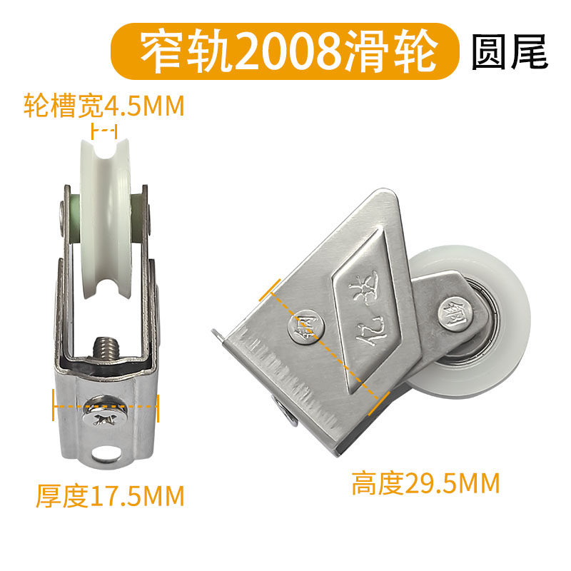 Vintage aluminum alloy 2008 type stainless steel door and window pulley round tail single wheel fork tail double wheel push and pull window roller