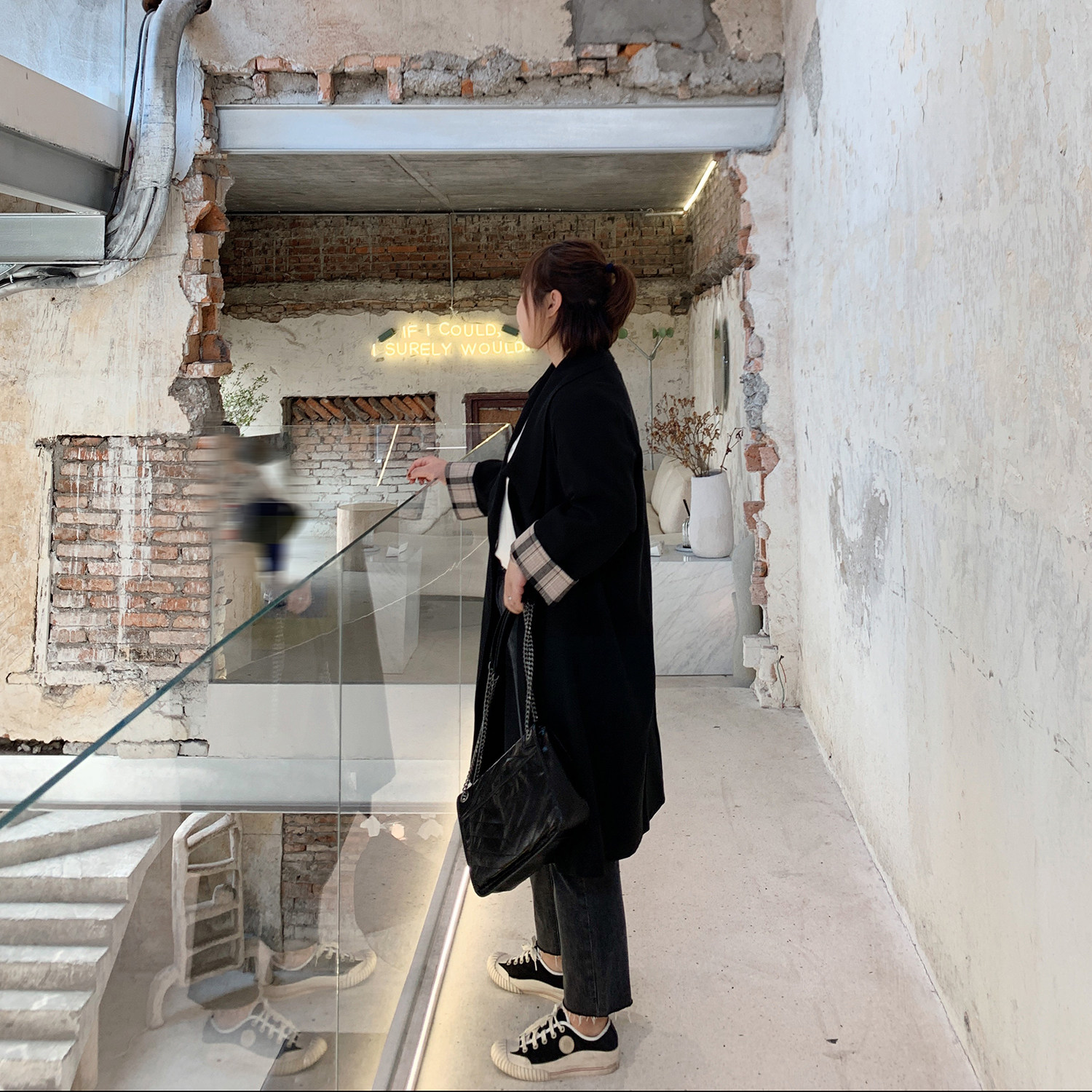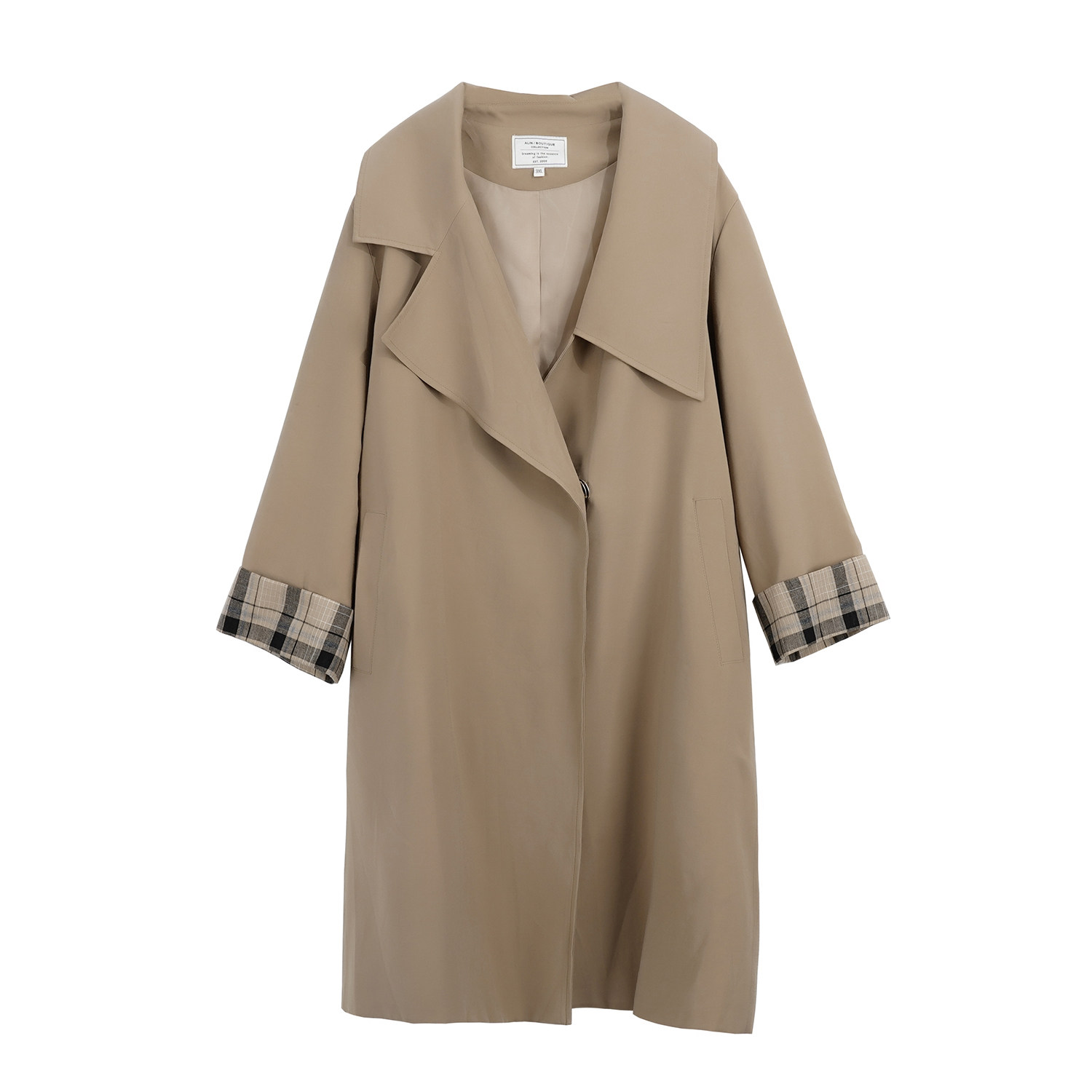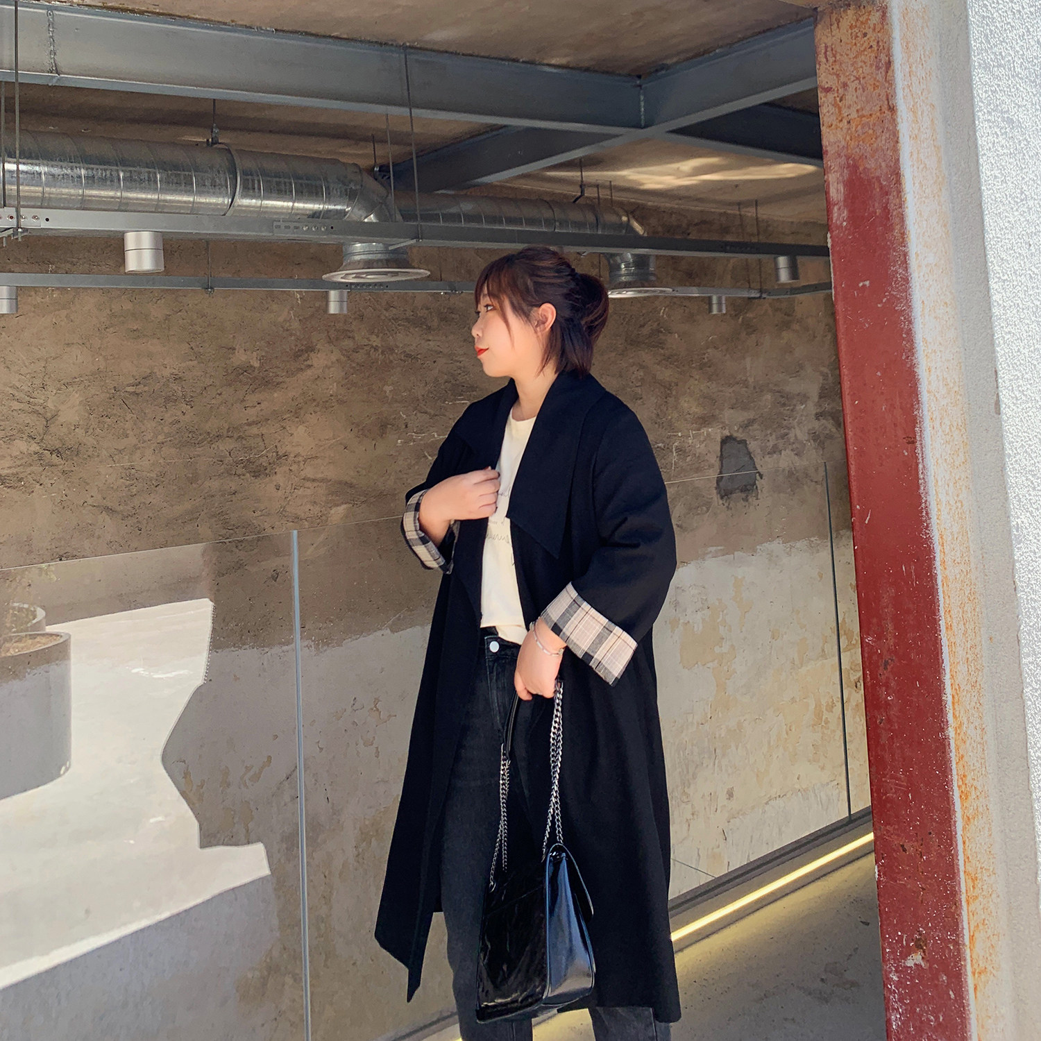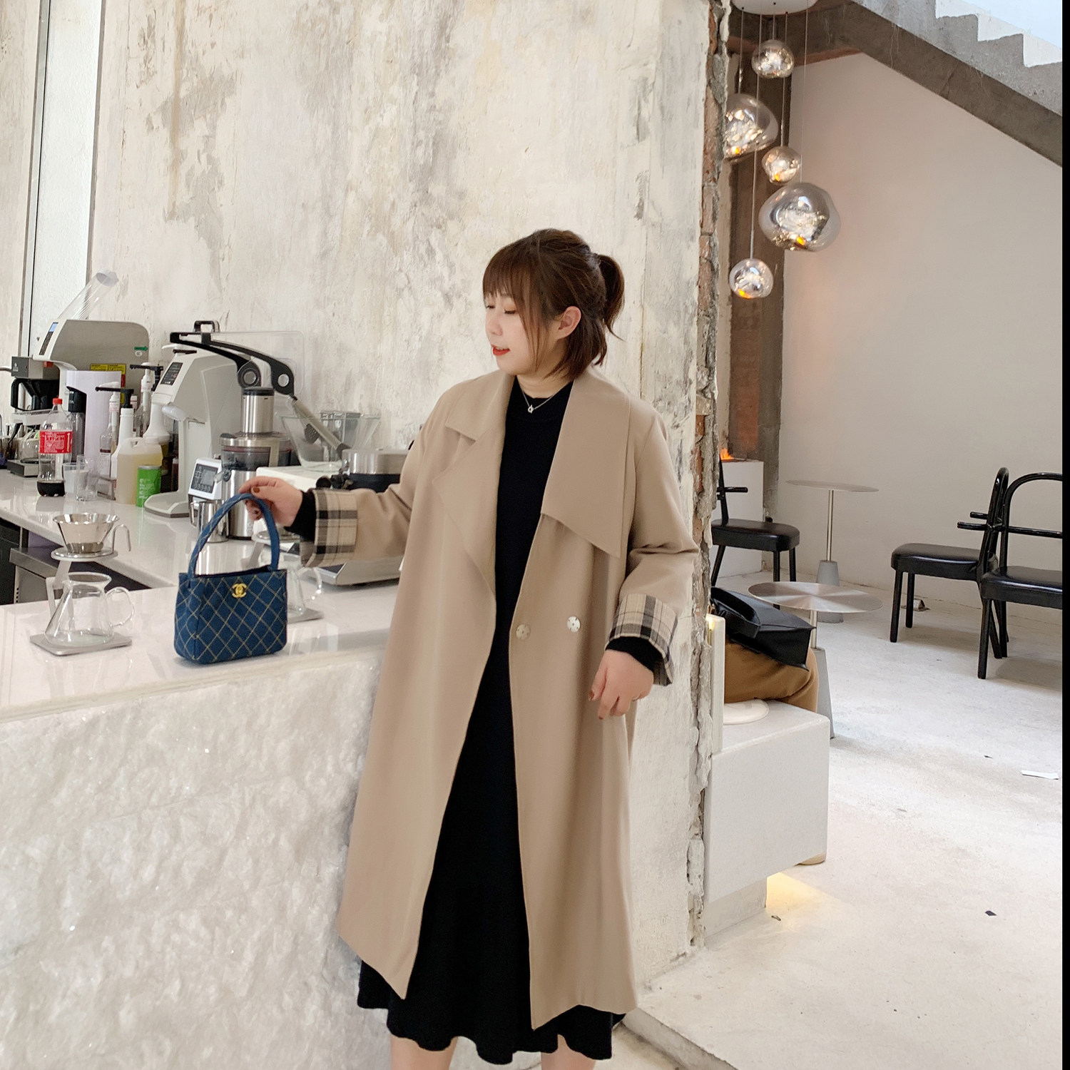 ALIN custom large size windbreaker women's 200 pounds of autumn new thin meat plaid stitching in the long version of the jacket