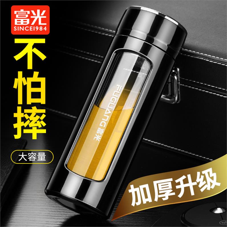 Fuguang water glass rich yellow cup bodybuilding double glass cup 500ml portable summer small capacity female anti-scalding 4