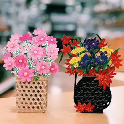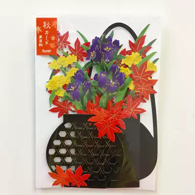 Japan autumn flower basket three-dimensional greeting card to send boudoir maple leaf 3D decoration Teacher's Day to send teacher Girlfriend blessing card
