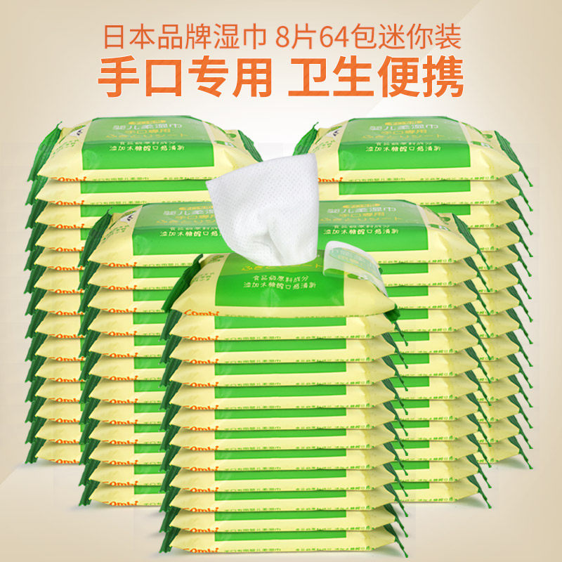 combi kombe baby hand-mouth special wet towel portable mini soft damp paper towel children carry 8 pumps 64 packs