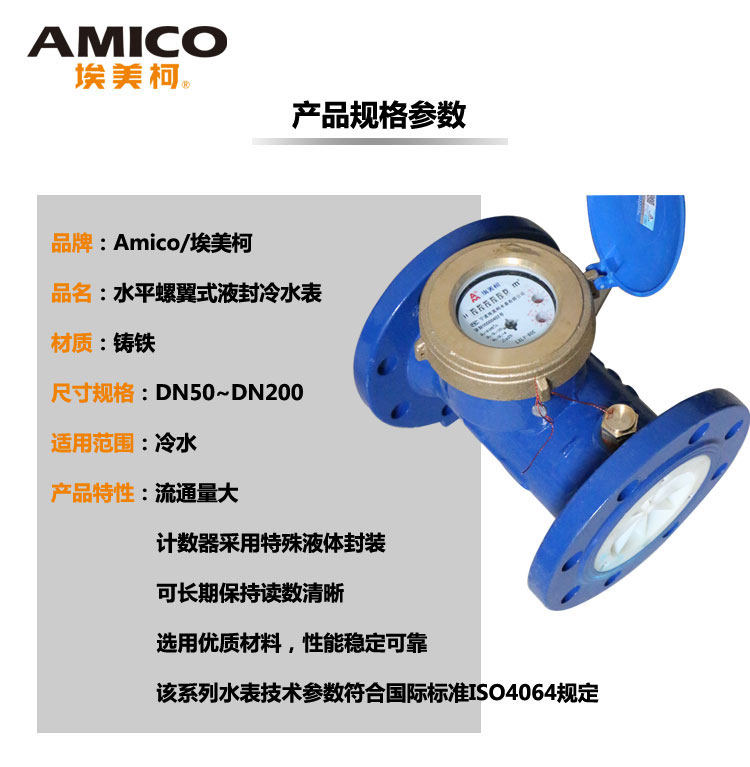 Emco flange water meter LXLY-E 014 iron shell screw wing liquid seal large diameter mechanical digital cold water meter