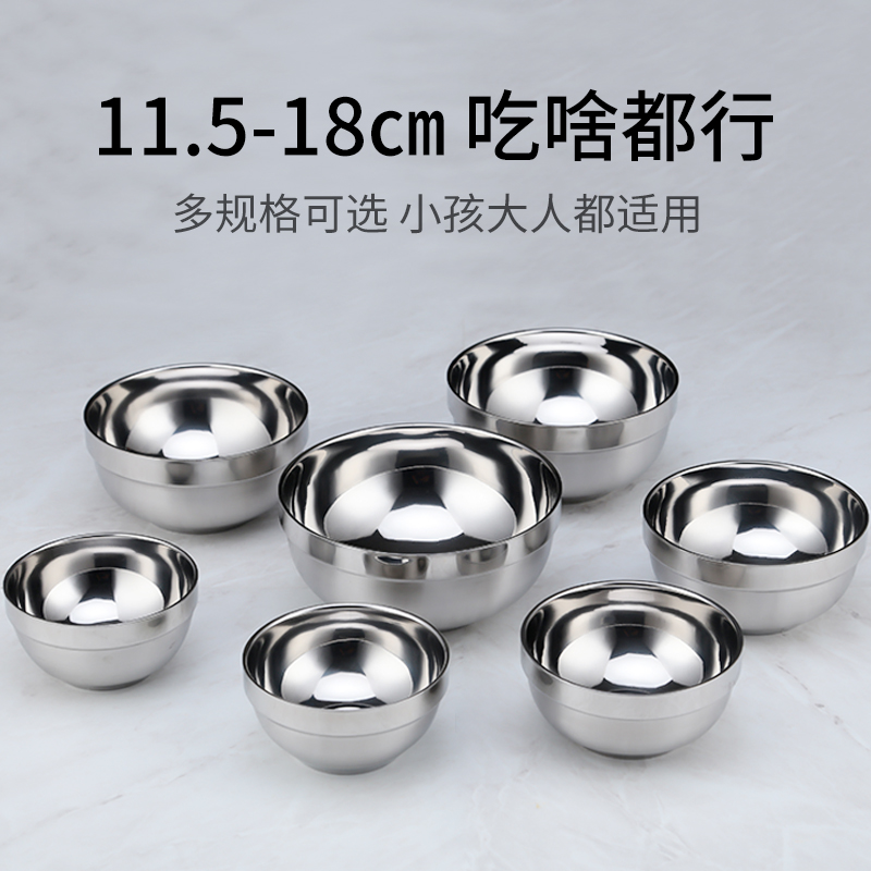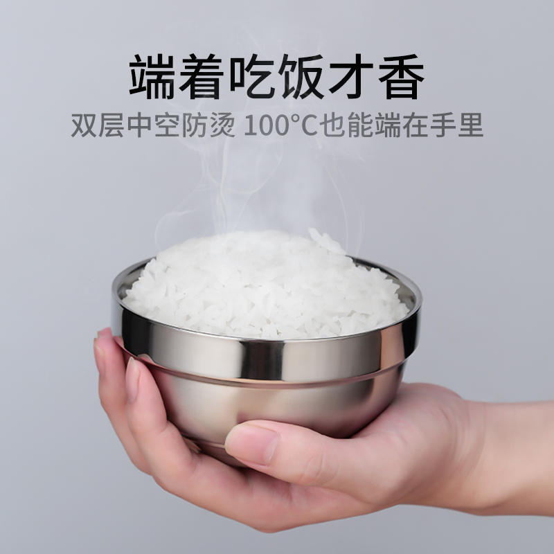 304 stainless steel bowl Double-layer household non-hot children's eating bowl small bowl Kindergarten canteen rice bowl soup bowl