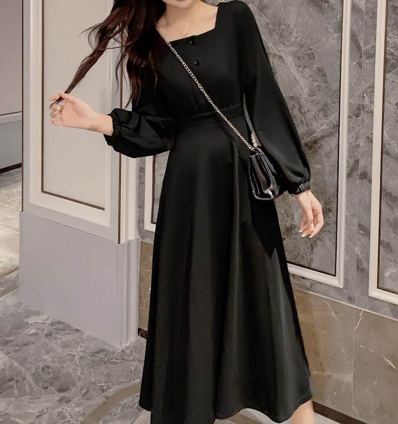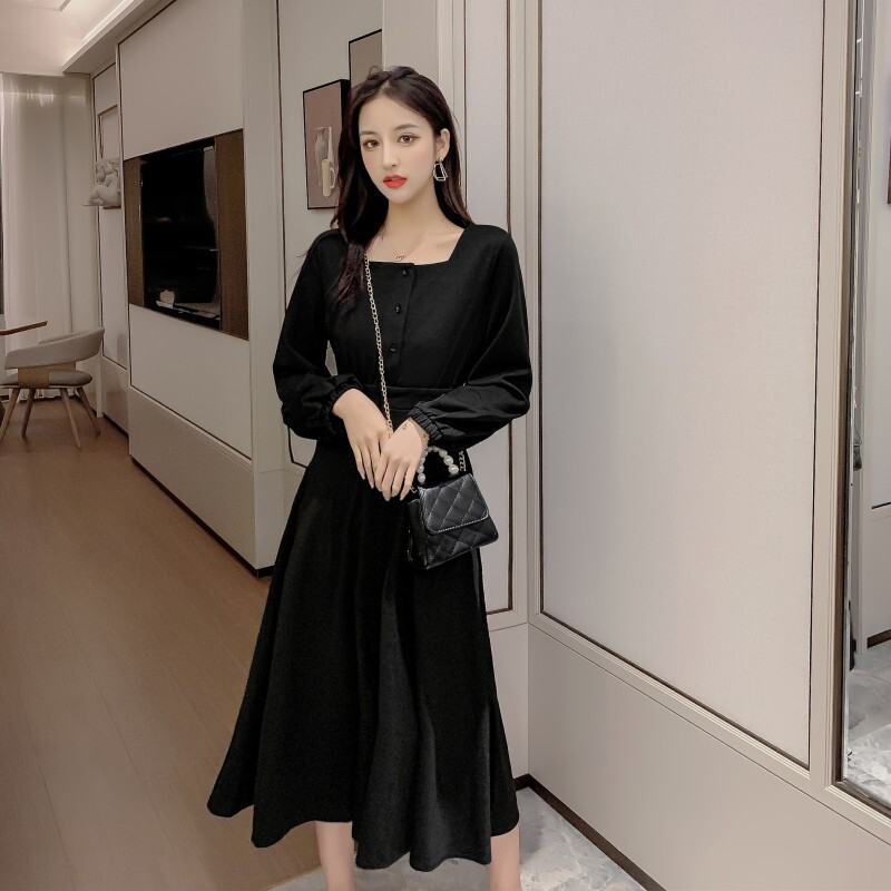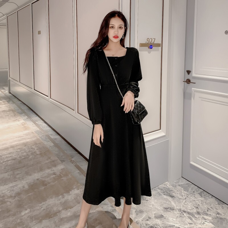 Large size 2021 autumn dress Korean fashion foreign pie long sleeve French knee retro skirt Zhixun French dress women