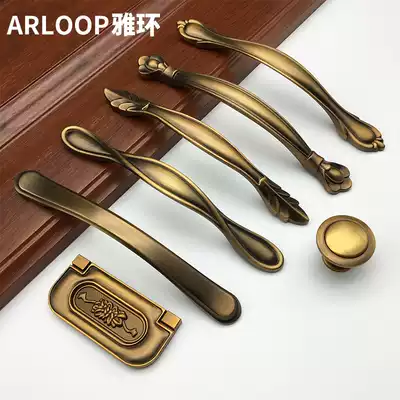 New Chinese handle cabinet door yellow bronze handle imitation retro Golden Drawer Wardrobe whole cabinet door handle cabinet handle
